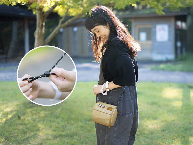 Body/ กระเป๋าใส่ทิชชู, core rod/ แกนกลาง, shoulder strap/ สายสะพาย, patch/ ป้าย