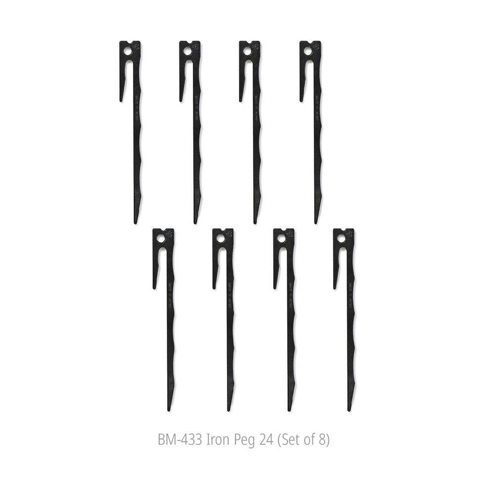 Belmont Iron Peg 24 สมอบกขนาด 24 cm ผลิตจากเหล็กโครเมียม โมลิบดีนัม มีความแข็งแรงทนทาน รูปทรงที่เลียบแบบรูปทรงของหลังมังกร ช่วยให้ยึดเชือกได้ง่าย และ มีโอกาสหลุดน้อยลง หากวางน้ำหนักไว้ที่ด้านหลังอีกด้าน จะทำให้ดึงเชือกออกได้ง่ายขึ้น หากวางตะแคงบนพื้นที่หลวม จะเพิ่มแรงต้านทาน และ มีโอกาสหลุดออกได้ยาก