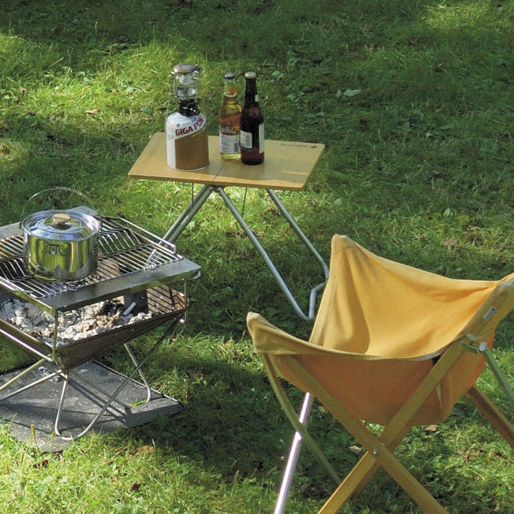 เหมาะสำหรับวางข้างเก้าอี้ใช้เป็นโต๊ะข้าง ทำกาแฟ ขนม เก็บง่ายขนาดเล็ก ผลิตด้วยไม้ไผ่ และอลูมิเนียม