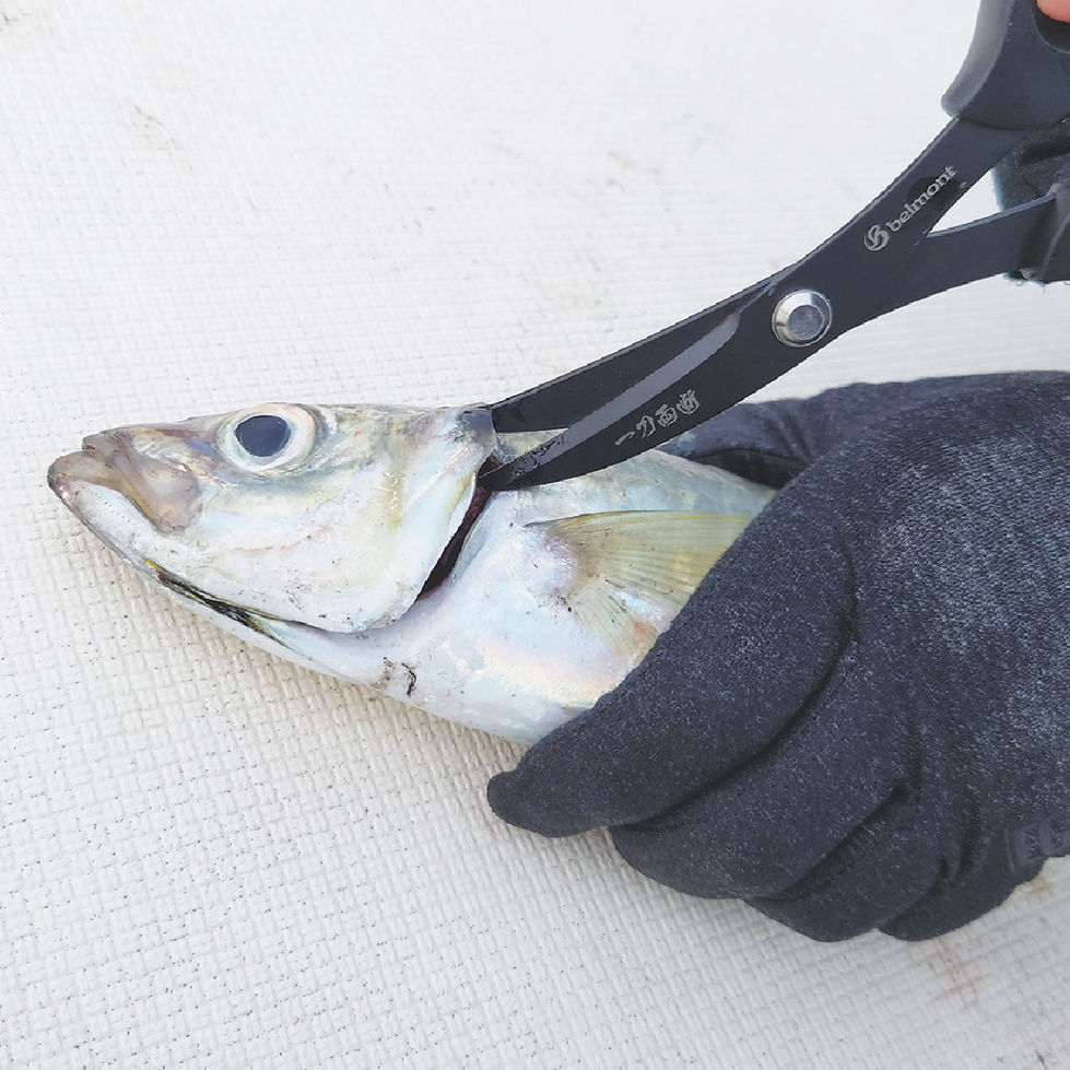 Belmont Stainless Steel scissors กรรไกรตัดปลา ผลิตจากสแตนเลสเคลือบฟลูออรีนป้องกันสนิม ที่ออกแบบมาเป็นพิเศษสำหรับการชำแหละ ตัดแต่ง และ บรรจุปลา ใช้งานได้กับสาย PE (Polyethylene) สายตกปลา