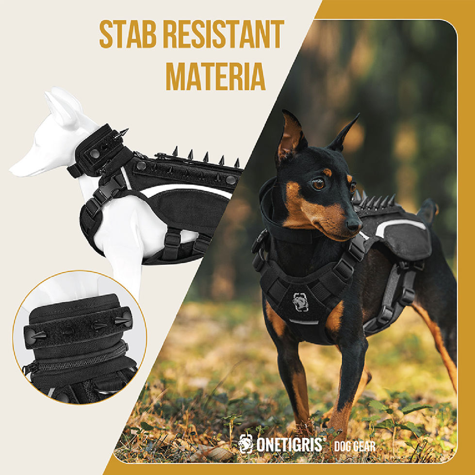 OneTigris Stegosaur Dog Harness ออกแบบมาให้มีดีไซน์โดดเด่น มีหนามแหลม พร้อมแผ่นเสริมที่ทำจากโลหะผสมสังกะสีที่ด้านหลัง และรอบคอ สายรัดนี้ไม่เพียงแต่ดูดุร้ายแต่ยังให้การปกป้องเพิ่มเติมจากสัตว์ป่าอีกด้วย หากคุณชอบรูปลักษณ์ที่ดูทันสมัยกว่านี้ ก็สามารถถอดหนามแหลม และปลอกคอออกได้ทั้งหมดเพื่อความอเนกประสงค์